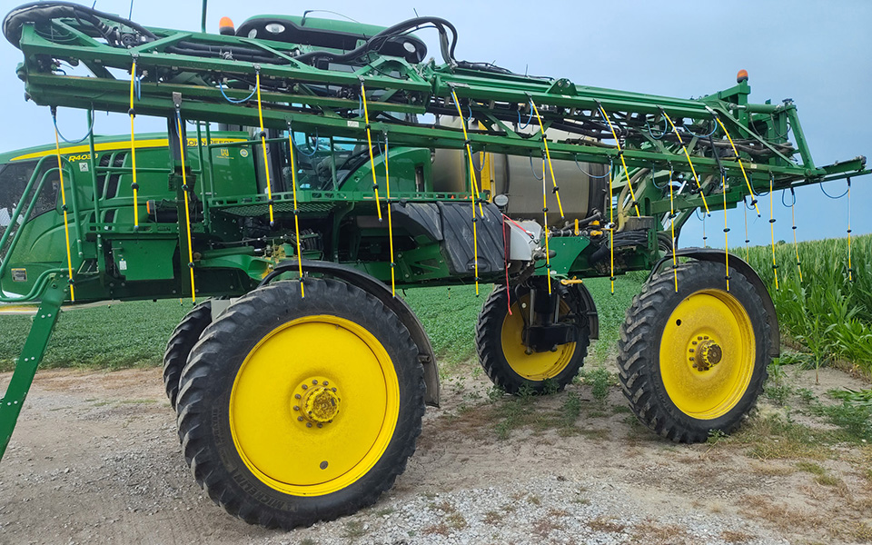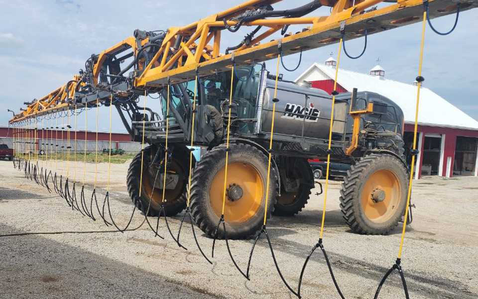 The Beluga HoseDrop is a customizable spraying system designed to spray between rows and inside the crop canopy. It combines lightweight flexible hosedrops with a unique low-profile nozzle body to be used in applications such as fertilizer sidedress, herbicide banding, or subcanopy crop spraying.